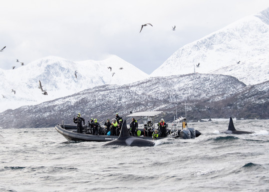 Der Winter in der Arktis bedeutet kürzere Tageslichtstunden. Unsere Touren starten früh, damit wir das gesamte verfügbare Tageslicht nutzen. So holen Sie das Beste aus Ihrer Walbeobachtungstour heraus! Wir nähern uns den Walen respektvoll in ihrer natürlichen Umgebung.