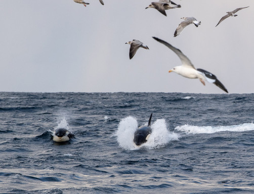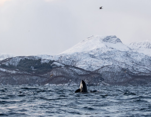 The whale watching starts from Skjervøy harbor, next to “Hotel Maritime” a short way out to the whales. Please be at Hotel Maritim Skjervøy, 45 minutes before departure. After check-in you will receive an informative introduction about the whales and their habitat as well as a safety briefing. When necessary, information is given in different languages.